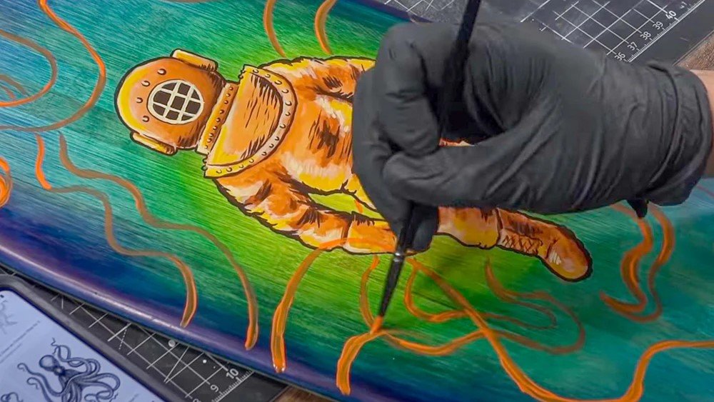 3. Apply Angelus Paint with paint brush, airbrush (at least 0.35mm nozzle) or sponge. Apply 3-5 coats or until desired coverage has been reached. Less coats can be used for line work and detail work.