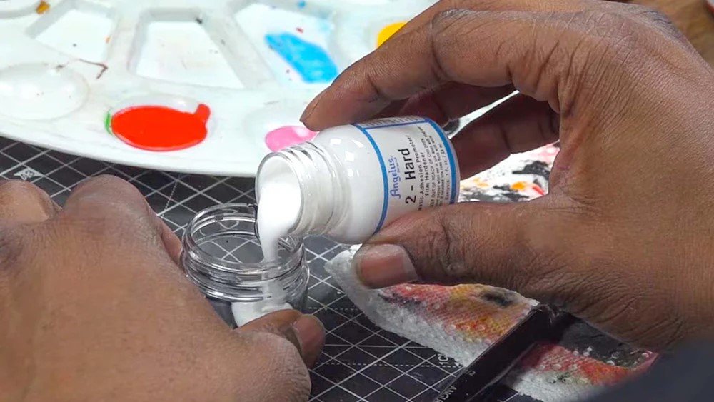 1. Prep by cleaning the surface with a cleaning product like our Angelus Easy Cleaner Kit. It is necessary to get out all the oils and dirt that may be sitting in or on the canvas.