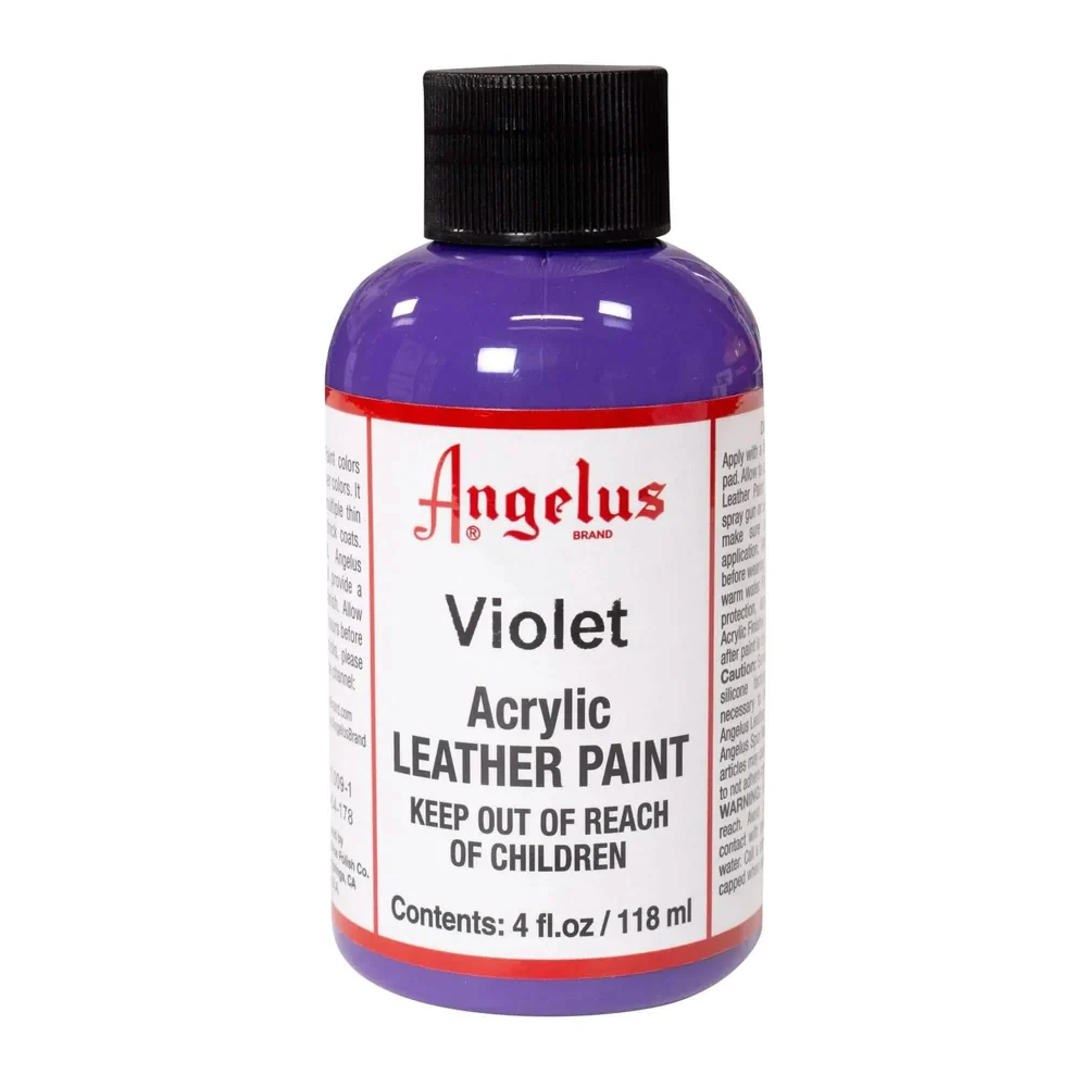 Angelus Acrylic Leather Paint’s are flexible and will not crack when prepped and applied properly to leather items. Once completely dry, Angelus Violet Leather Paint will be completely water proof.